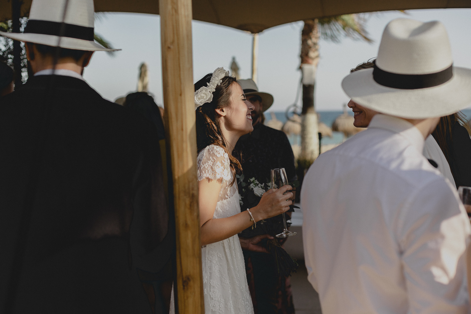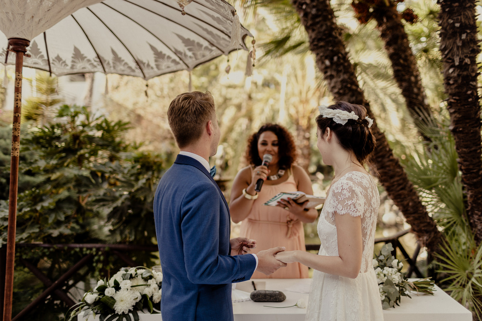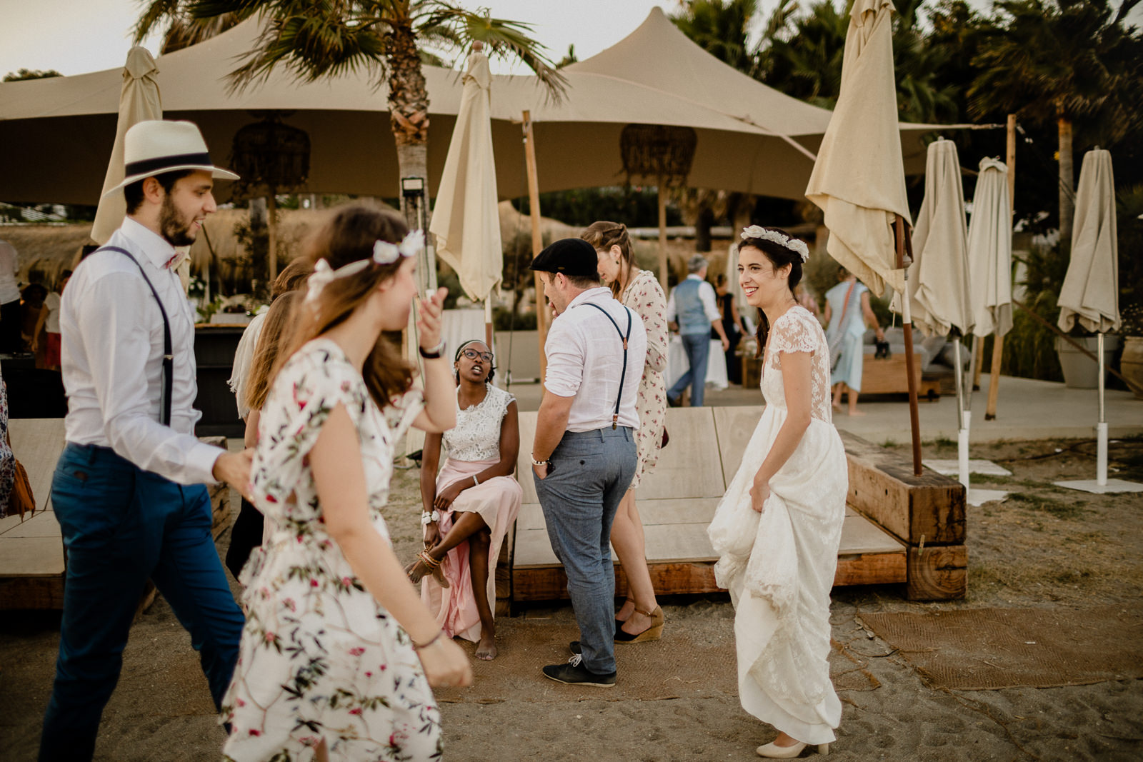 There were so many moving moments throughout the day but for me, what stood out the most, were the beautiful words that were dedicated to the couple by their guests during the wedding ceremony. Some guests played instruments or sang and this created a tremendous warmth and emotion. There were even a few who had come in fancy dress, adding a really fun and cheerful touch.We did the couple’s photo session in the hotel gardens and to finish off, went to the beach and caught the last rays of sunshine. It was such a pleasure to take photos of a couple who are so deeply in love. I hope my photos transmit both the emotions that I felt that day and the couple’s infectious happiness.